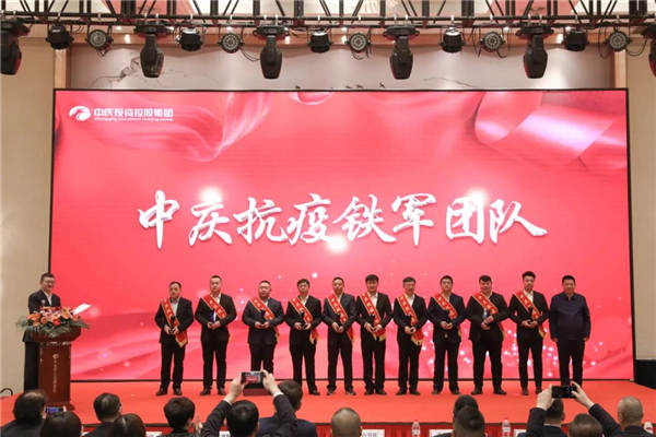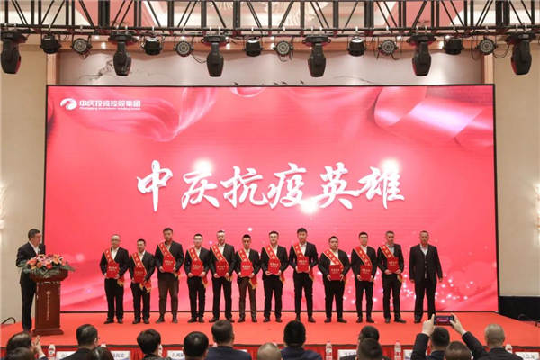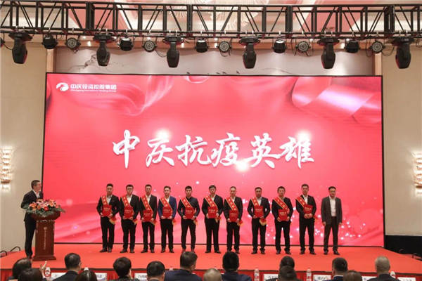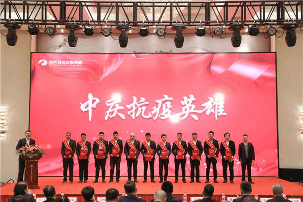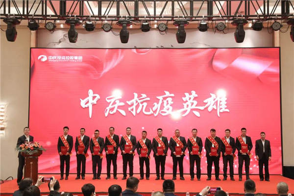 會議首先對2021年參加吉林省通化市、公主嶺市抗疫援建項目的160名中慶鐵軍、十支團隊進行表彰,分別授予“中慶抗疫英雄”“中慶抗疫鐵軍團隊”榮譽稱號,并頒發(fā)抗疫英雄獎章、榮譽證書、獎杯,抗疫英雄詮釋著中慶鐵軍精神,激勵著所有中慶人勇于擔當,繼續(xù)拼搏。